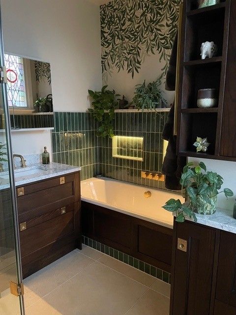 To create a dream bathroom in such a small space takes clever planning and an expert knowledge of the products available, as demonstrated in this recent project from Aston Matthews. The designers used all their creative expertise to incorporate a bath and separate walk-in shower with wetroom floor as well as imaginative flourishes including illuminated niches, a wall mounted heated towel rail and an attractive marble shelf for plants and ornaments